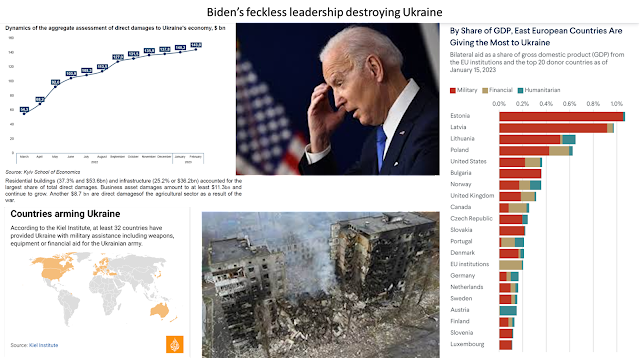 Exacerbating the problem, Biden has been unsuccessful in leading the world to stop Putin. Most of the world is not helping. Small, ex-Soviet countries are providing more support for Ukraine than the US and most of Europe, especially the large, developed countries, are far behind in their support.