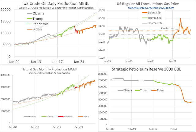 Domestic crude oil production under Biden significantly lags pre-Biden trend.