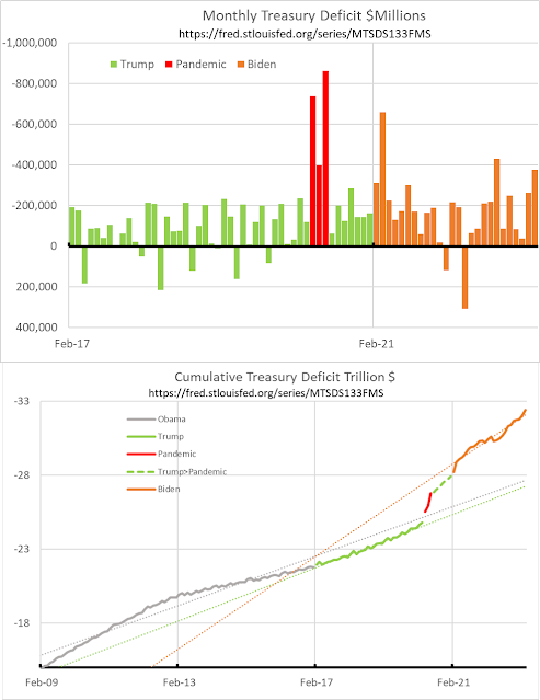 Biden continues to be delusional with respect to his impact on deficits. Claiming large cuts is intellectually dishonest. Deficits under Biden are GROWING much faster than under Obama or Trump (excluding the emergency spending to cover the Pandemic.)