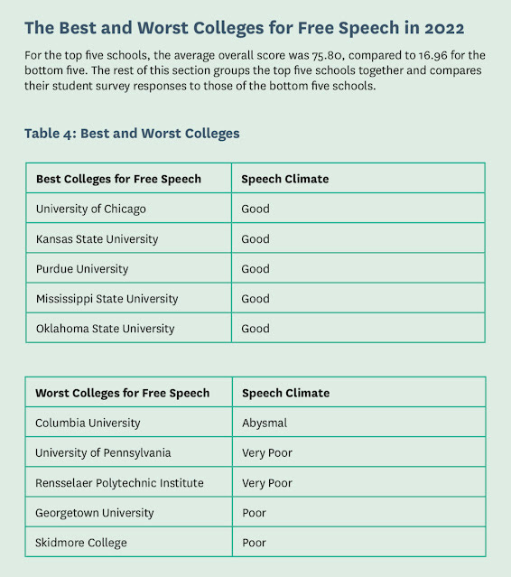 Admittedly it was a while back that I attended the schools but my two alma mater‘s rank first and third in free speech. Interestingly, my woke niece’s school, Wesleyan who thinks I’m a racist ranks 127th.