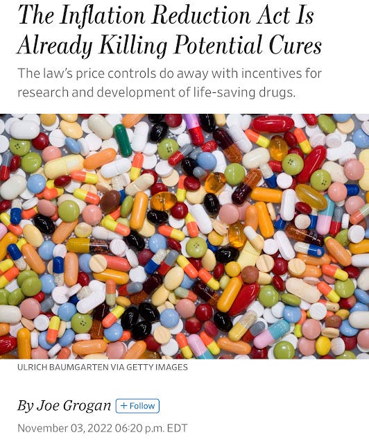 Biden’s Inflation Reduction Act, which overall will not reduce inflation, may reduce the cost of some drugs, but it will also reduce the number of new cures and treatments developed.