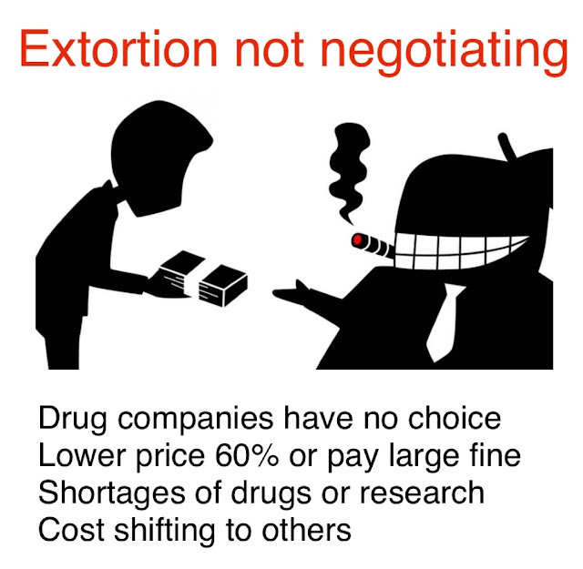 The Inflation Reduction Act allows the Federal Governments to force drug companies to accept Medicare prices for drugs 25-65% lower than the previous years prices. Biden calls this “negotiating.” It’s not negotiating it is extortion. It’s a price cap