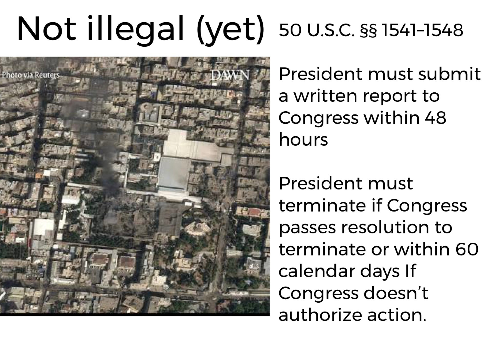 If Congress doesn’t authorize action, President must terminate within 60 calendar days