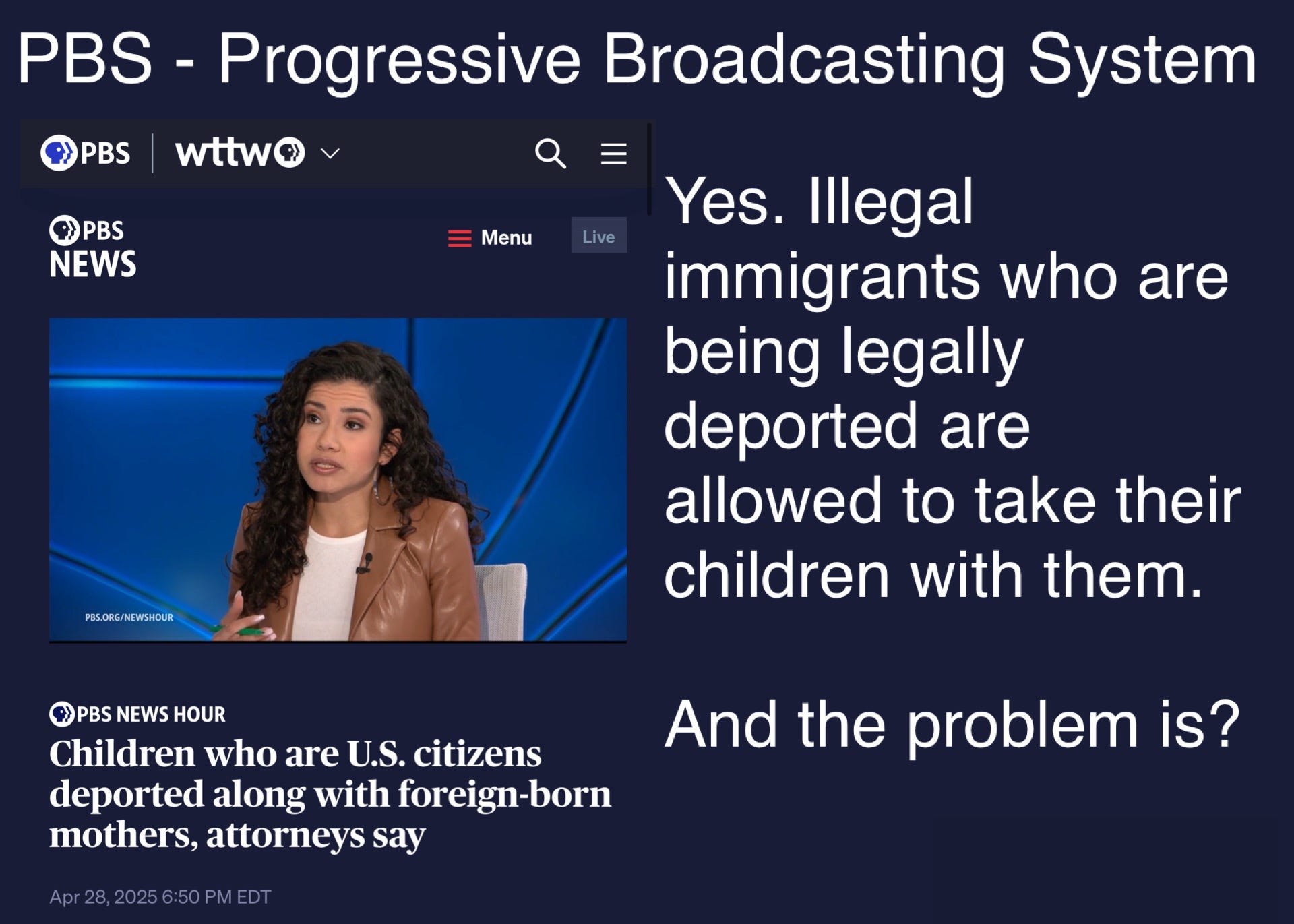 PBS - Progressive Broadcasting SystemBob GonzalezMay 01, 2025SharePBS continues its mission to misinform the progressives. https://jonathanturley.org/2025/05/01/the-baby-hoax-leading-journalists-repeat-false-narrative-over-child-deportations/SubscribePreviousNext