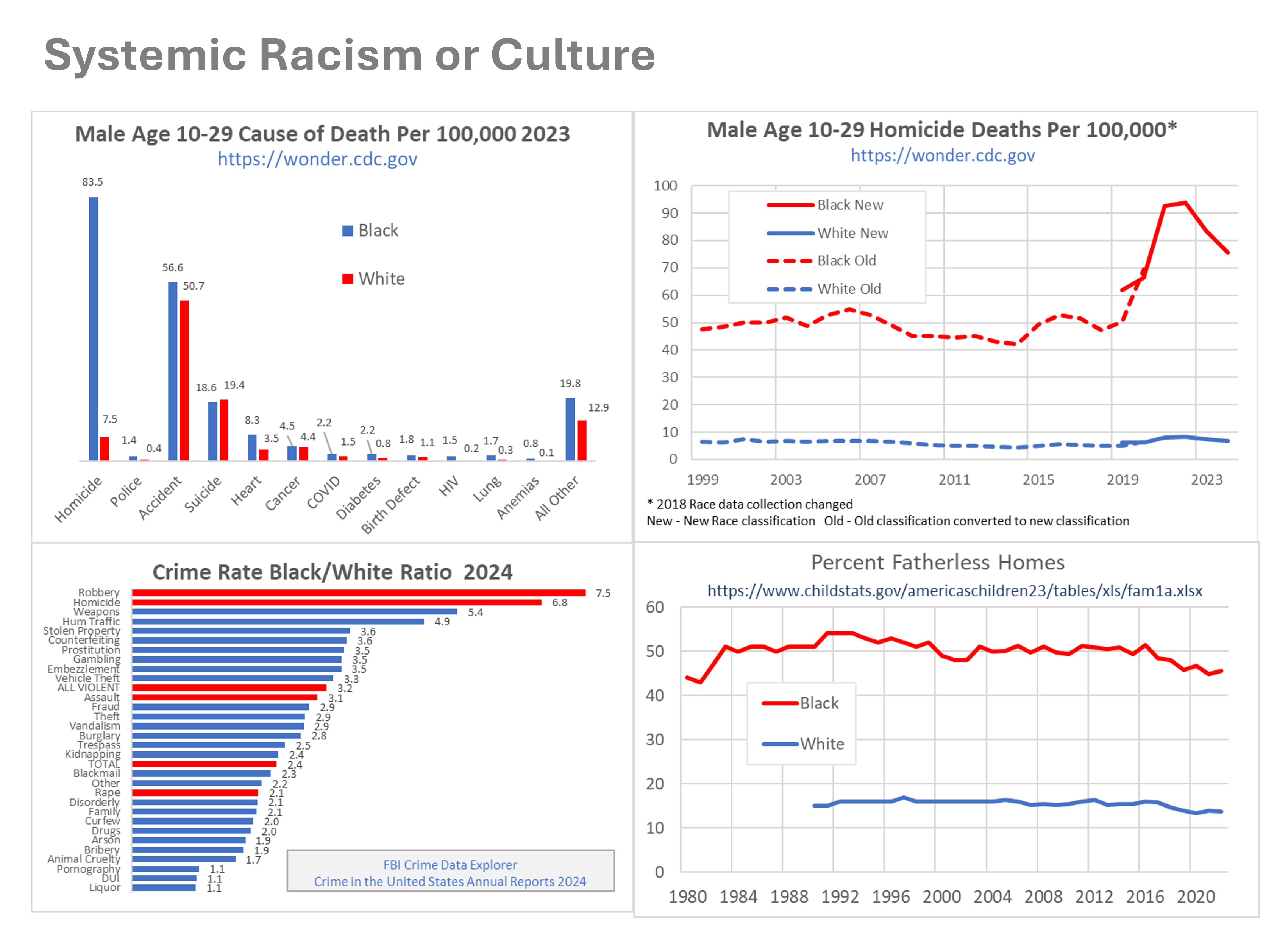 Homicide is the leading cause of death for young black males and the rate is 11 times higher than the rate for young white males.