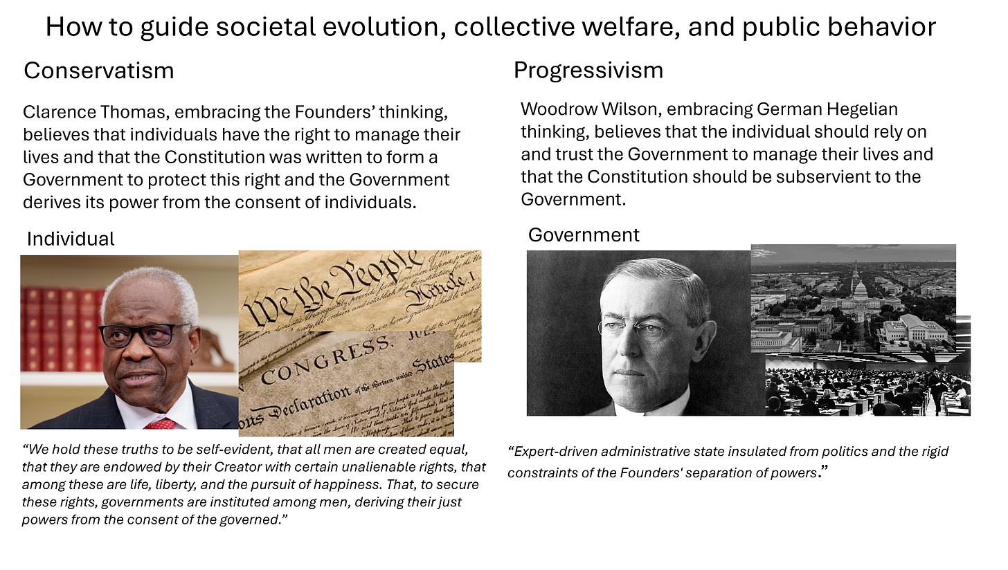 If you listen to his speech (link below) you will hear that he is simple and clearly sharing his perspectives on the meaning and purpose of the Declaration of Independence, the Constitution and inalienable rights and CONTRASTING those to the perspectives of Progressives, where Progressivism is identified as the movement away from the Constitution and individual rights towards an administrative state as introduced by Wilson in 1912.