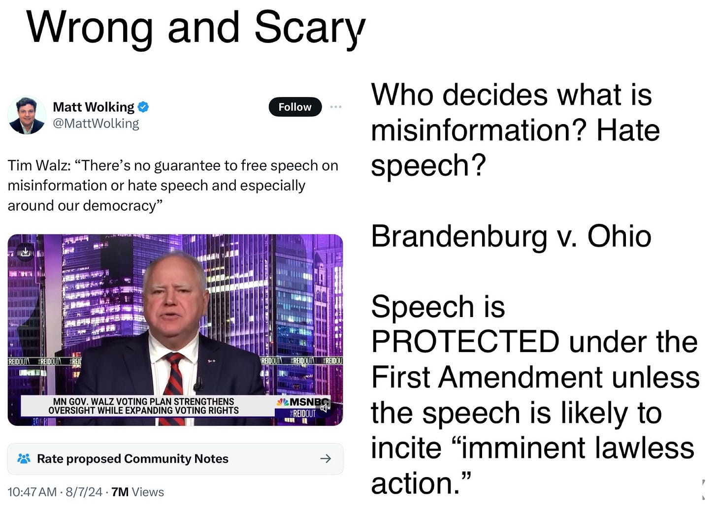 A great article on free speech and how Harris and Walz are wrong and a threat to Democracy by JonathanTurley.