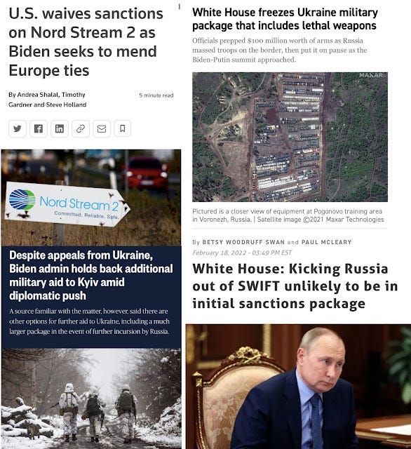 There’s lots of coincidental evidence that, if anything, Biden has been encouraging Putin to take Ukraine. I can’t help but wonder what Biden said in his phone calls to Putin?